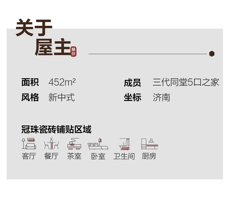 取“华夏珍宝”之义,纳自然大观之美,融文化大成的国韵,筑就三代同堂家庭的大美新家。